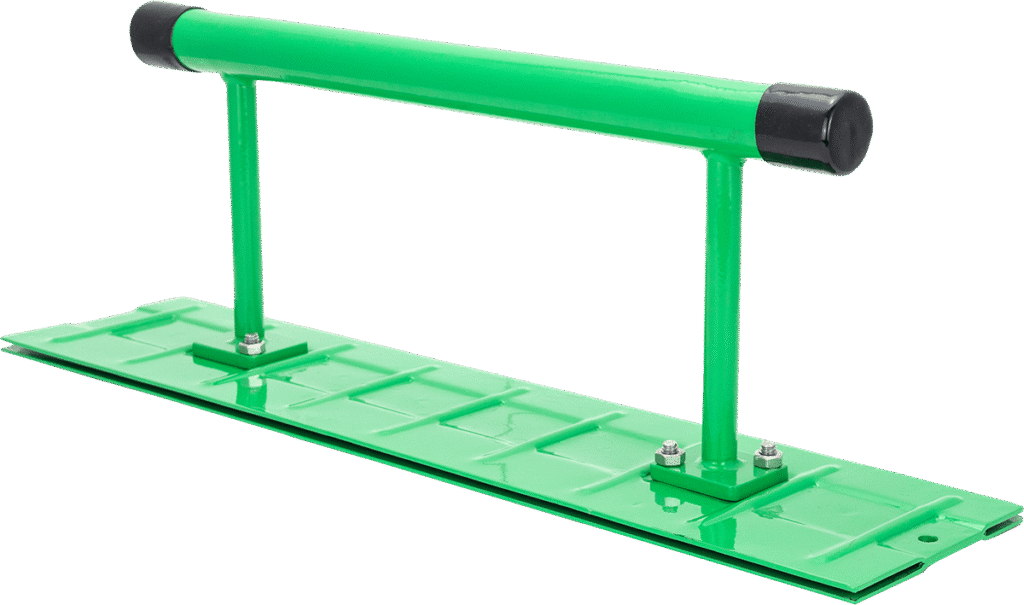 The high leverage Drip Edge Benders are designed to make 1″ or 1½” bends in metal panel edges for standing seam roofing applications. Constructed from a lightweight 14 gauge mild steel, this tool can easily be used overhead on installed panels to bend up to 18 gauge material. The high quality spot welding between plates and heat-treated Primegrip green powder-coated finish provides an excellent combination of strength and durability to keep your tool performing longer.