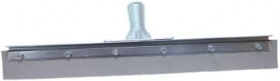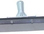 18” stiff gray EPDM rubber squeegee – 1/8” serrated edge, 1/4” x 2 blade. 16 ga plated steel. Stainless steel handle socket.