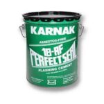 Karnak #18AF Perfectseal Plastic Cement is a scientifically compounded composition of selected asphalts, mineral fibers, and refined solvents that are manufactured to a heavy consistency. Designed for application by trowel #18AF is a durable, elastic cement with excellent adhesion and weathering characteristics. This product when applied dries to a tough, flexible, water-resistant and corrosion-proof coating that provides excellent performance over a wide range of temperature and weather conditions.