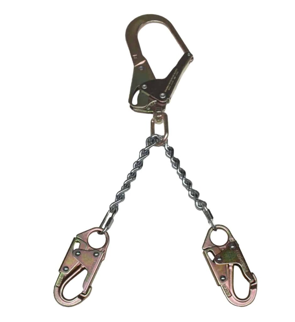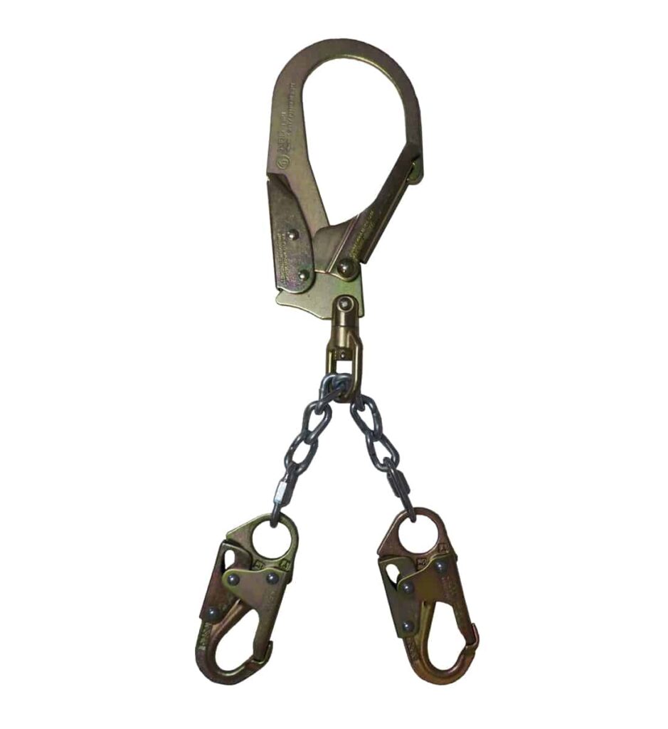 Forged steel swivel rebar hook with 2.55 in (635 mm) opening; Forged steel locking snap hooks with 0.83 in (21.08 mm) opening; 5/0 Twist link chain