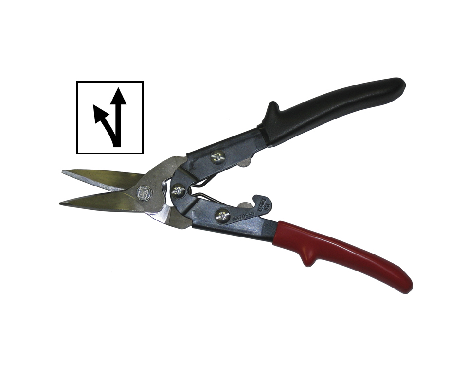 PK1 9-1/2″ aviation snips, 1-1/4″ left cut, red grips, ergonomic curved handles