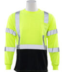 ANSI 107 Class 3 Long Sleeve T-shirt. 100% polyester jersey with moisture wicking. Left chest pocket. Black bottom to mask dirt. AwareLite reflective trim. Sizes MD – 5X.