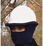 Bag of 12. 100% polyester. Snug elastic fit. Covers face entirely. Fame resistant treatment wears off after first wash. Prevents wind tunneling under helmet. Fits all ERB Safety cap style hard hats. Color and size may vary slightly with different lots.
