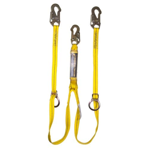 The Guardian Fall Protection Tie-Back Lanyard eliminates the need for a separate anchorage connector. The leg of the Tie-Back Lanyard functions to loop around a compatible anchor point, with the snaphook component connecting to the leg D-ring. The integrated shock absorbing component and snaphook then connect to the full-body harness dorsal D-ring, creating a complete PFAS. The adjustable D-ring tie-back point, as well as the single and double leg options, further increase the versatility of this lanyard.