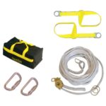 A horizontal lifeline kit is an essential piece of equipment for individuals working at heights, such as on construction sites or industrial settings. It consists of a flexible cable or rope that is anchored at both ends, allowing workers to clip onto the line with a harness and move along the length of the line while remaining securely attached. This kit provides a reliable means of fall protection, ensuring that workers can safely perform their tasks at heights without the risk of serious injury or death in the event of a fall.