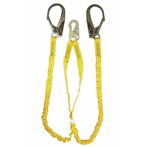 The Guardian fall protection internal shock lanyard is made from heavy duty outer polyester webbing, with a polyester core specifically designed to reduce impact from forces. Because the shock absorption is build directly into the lanyard, there is no need for an external shock absorber, making it a lightweight option. This lanyard does not stretch.