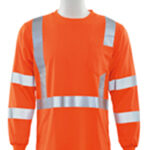 ANSI 107 Class 3 Long Sleeve T-shirt. 100% polyester jersey with moisture wicking. Left chest pocket. AwareLite reflective trim. Sizes MD – 5X.