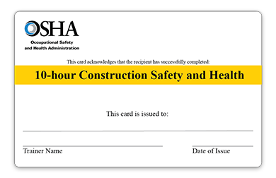 Upon completion of the training, workers receive an official Department of Labor (DOL) card, which serves as proof of their OSHA 10 training.