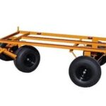 Heavy Duty Material Trailer!! 30″x72″ deck dimensions with heavy duty 2″ channel frame. 22″ deck height. It comes with 18×850 Pneumatic tires (Non-Flat Lite tires available). Self adjusting drop brake with “T” handle for easy pulling. Stake pockets for channel riser and corner pin pockets for rolled goods. Pins included with attaching chains. Roller bearings in wheels for smooth rolling. Open back frame for hoisting fork or forklift access. Rear hitch and front pin hitch for the ability to form train of trailers. Pins included. 2000 lbs capacity. This trailer is a little longer than our standard trailer (505400).