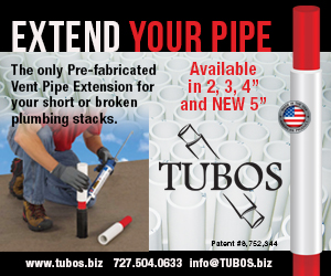 • Ease of Installation: No special tools are required to size and install TUBOS® securely into openings of existing plumbing vent pipes. Standard hand tools (tape measure, manual or portable battery-powered saw, caulk gun) are all that are needed for installation.